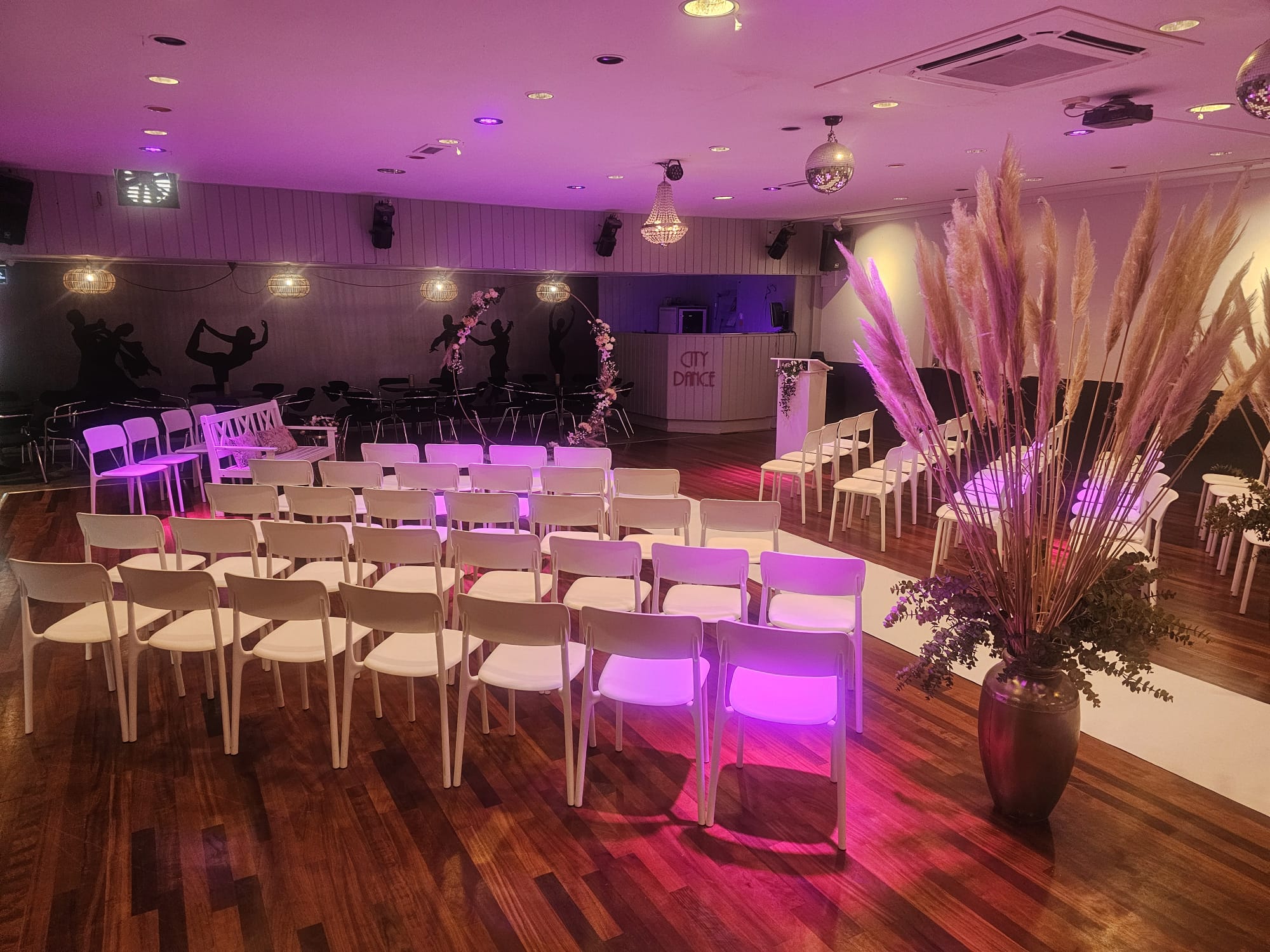 Jullie bruiloft wordt een dag om nooit te vergeten, en daar dragen wij graag aan bij. Of je nu een intieme ceremonie of een groots feest organiseert: bij Citydance ben je aan het juiste adres. Wij bieden een sfeervolle locatie, denken mee in de organisatie en nemen jullie zoveel mogelijk werk uit handen. Zo kunnen jullie ontspannen genieten van deze bijzondere dag.